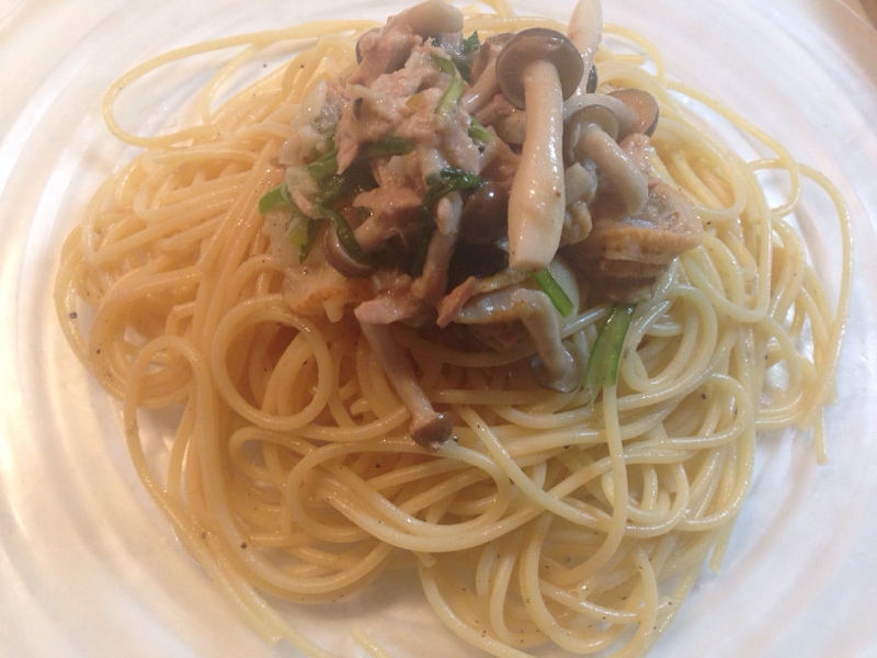 男のパスタ 豚バラとエリンギのバターポン酢ペペロンチーノ 国際結婚した素人主夫が奥様のために作る手料理